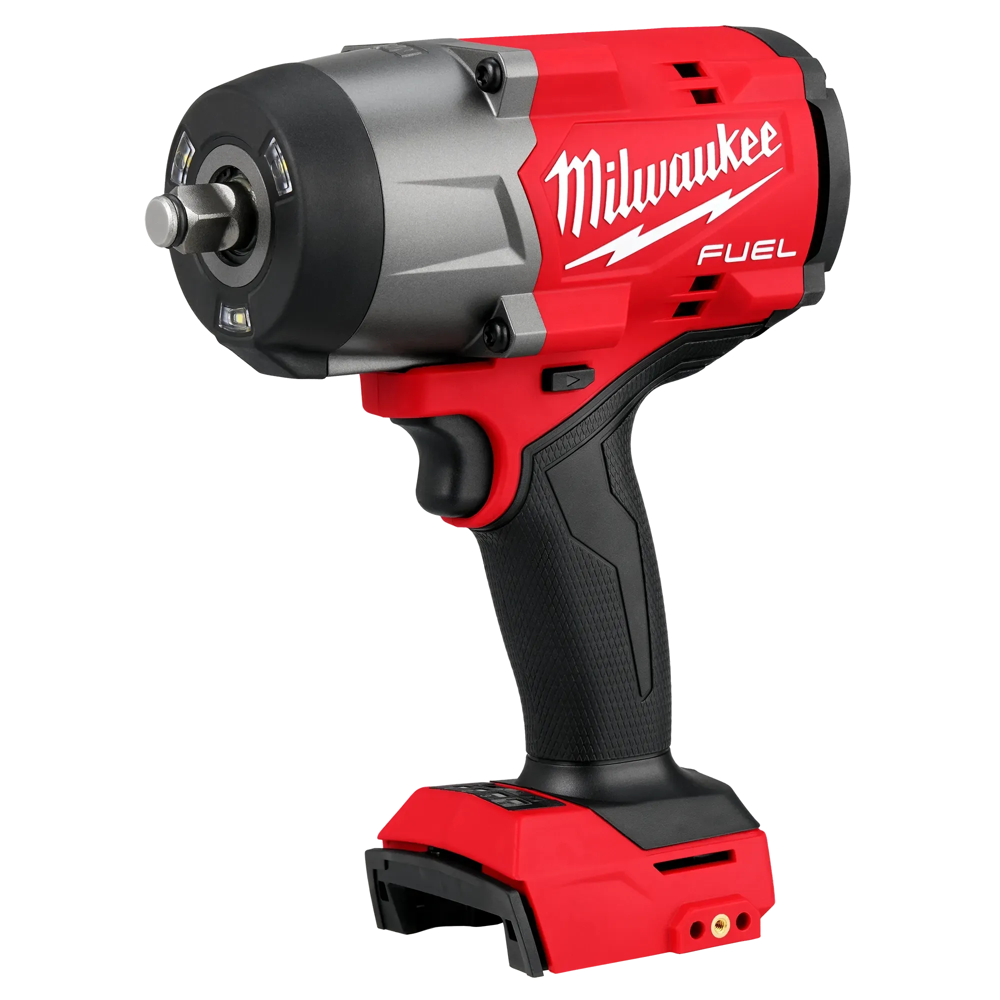 Nuestra llave de impacto de torque alto M18 FUEL™ de ½” con anillo de fricción incluye la llave de impacto con densidad más compacta en su clase, permite un mejor acceso en espacios estrechos y maximiza la productividad a través de velocidades rápidas de extracción. El motor sin escobillas POWERSTATE™ ofrece hasta 1,200 pies-lb de torque de sujeción y 1,600 pies-lb de torque de arranque con nuestras baterías M18™ REDLITHIUM™ FORGE™, mientras el tamaño compacto de 7.6" de largo da a los usuarios un mejor acceso en espacios estrechos. La llave de impacto de torque alto M18 FUEL™ de ½” con anillo de fricción maximiza la productividad en el lugar de trabajo y en el taller, ya que permite extraer pernos y sujetadores difíciles más rápido que con la competencia inalámbrica. Nuestro sistema de aislamiento de batería patentado proporciona una conexión de batería segura y controla la vibración transmitida a la batería. Tres luces LED rodean el yunque para ofrecer una luz más brillante con menos sombras. DRIVE CONTROL™ de 4 modalidades ofrece mayor precisión con un rango de niveles de RPM e IPM preestablecidos, los que se pueden seleccionar con tan solo un botón en la herramienta. Si selecciona la modalidad 4, el control AUTO SHUT-OFF™ aplica no más de 50 pies-lb de torque para aplicaciones de fijación manual, con el fin de evitar el exceso de apriete. La modalidad 4 también cuenta con control de extracción de pernos, lo que ofrece a nuestros usuarios salida de torque total, luego disminuye las RPM una vez que se haya soltado el perno para evitar que se caiga el sujetador. El diseño del anillo de fricción de ½” permite cambios rápidos y sin herramientas de los cubos.