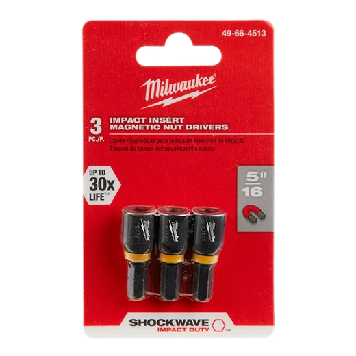 El aprietatuercas magnético para insertos SHOCKWAVE Impact Duty™ de Milwaukee® está diseñado para ofrecer una durabilidad extrema y una vida útil hasta 10 veces mayor. El aprietatuercas magnético SHOCKWAVE Impact Duty™ está hecho de acero patentado y tratado con calor para controlar la dureza y cuenta con un imán potente que permite una sujeción segura y un enganche firme de la broca. Las puntas presentan anillos con códigos de colores para una fácil identificación del tamaño y un borde biselado para permitir la sujeción en espacios estrechos. Diseñado para utilizarse con los soportes de puntas de brocas magnéticas SHOCKWAVE de Milwaukee® de 2.36", 3", 6", 12", soporte para brocas pivotante Knuckle™ de 30° y todos los soportes de puntas de brocas.