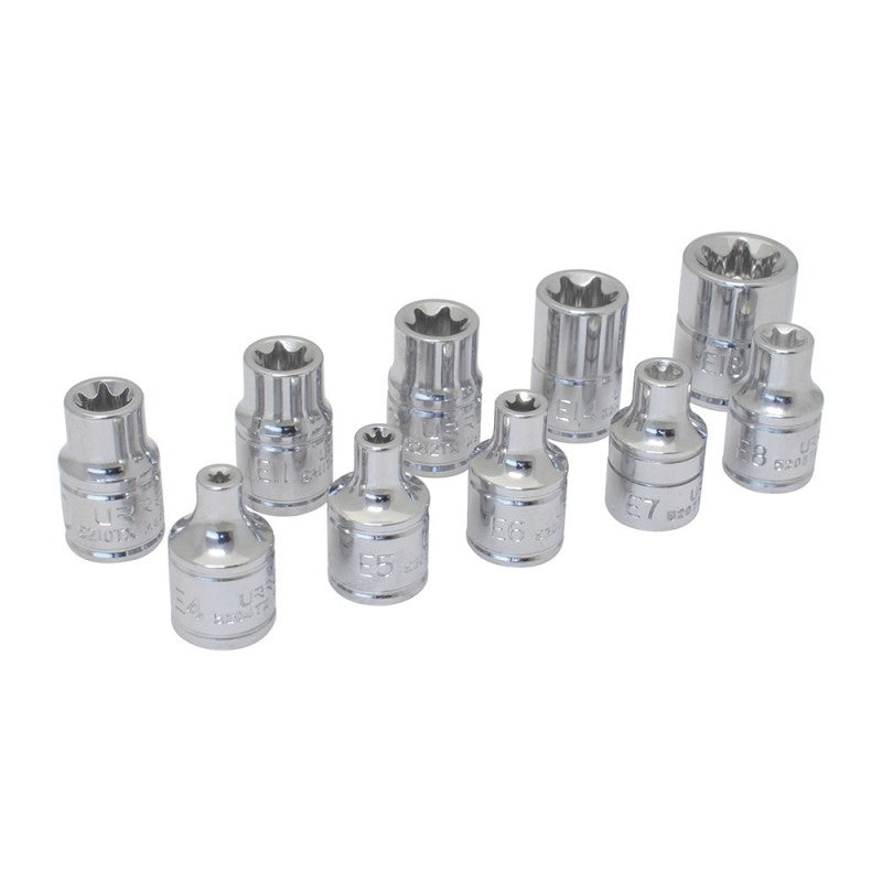 Los dados Torx® son conocidos por su capacidad para aplicar un par de torsión alto y uniforme, lo que los hace ideales para una amplia gama de trabajos mecánicos y de montaje. Con este juego de 10 piezas, tendrás una selección de tamaños de Torx® para adaptarse a diferentes necesidades de trabajo.